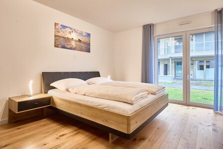 Das Schlafzimmer bietet Ihnen einen ruhigen Ort der Erholung. Die Kombination aus hochwertigen Materialien, klarer Struktur und dezenten Farben sorgt für eine entspannte Atmosphäre.