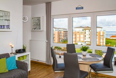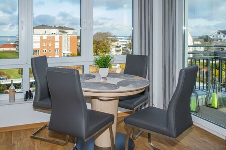 Ein besonderes Highlight der Ferienwohnung ist der großartige Balkon, der sowohl vom Wohnzimmer als auch vom Schlafzimmer aus begehbar ist. Hier können Sie die frische Meeresluft einatmen, die Sonne genießen und das umliegende Panorama schweifen lassen.