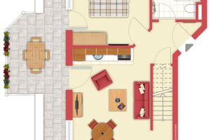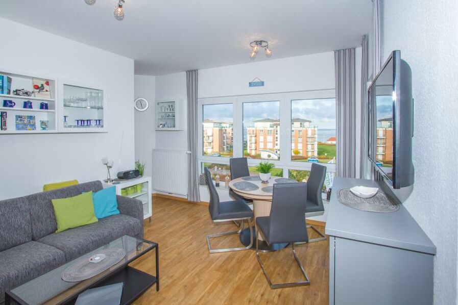 Die Ferienwohnung erstreckt sich über eine Gesamtfläche von ca. 60 qm und bietet Platz für bis zu 4 Personen. Sie befindet sich in der dritten Etage und ermöglicht Ihnen einen kleinen Seeblick über das Strandpalais Duhnen hinaus auf die Nordsee sowie über die Dächer von Duhnen.