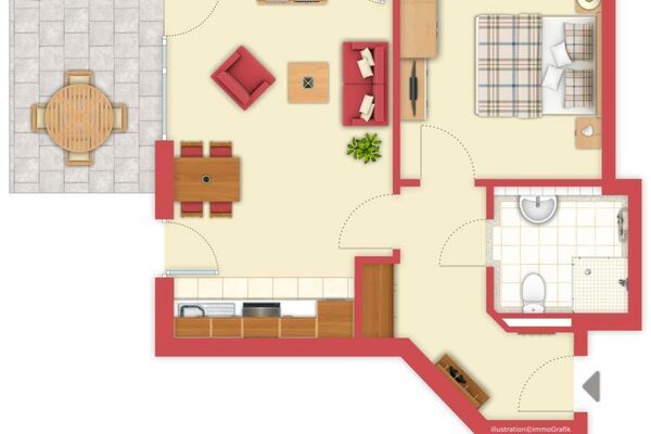 Der absolute Höhepunkt dieser Ferienwohnung ist der großartige Balkon mit einer nahezu kompletten Rundumsicht ins Grüne. Dank seiner windgeschützten Südostlage lädt er zum Verweilen und Entspannen ein. Stellen Sie sich vor, wie Sie Ihren Morgenkaffee auf dem Balkon genießen und den Tag mit der frischen Meeresbrise beginnen.