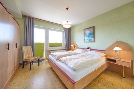 Unsere geräumigen 3-Zimmer-Ferienwohnungen sind etwa 55 m² groß und bieten viel Raum zum Schlafen, Essen und Wohnen im Urlaub. Drei Personen haben hier komfortable Betten, für eine weitere steht ein oberes Etagenbett bereit. Zusätzlich verfügt die Wohnung Nr. 1 über eine bequeme Schlafcouch im Wohnzimmer. Das Schlafzimmer verfügt über ein bequemes Doppelbett mit individuell verstellbaren Lattenrosten; so ist höchster Schlafkomfort garantiert. Im zweiten Schlafzimmer haben wir uns etwas Besonderes ausgedacht: Üblicherweise befindet sich hier in einem Einzelbett die Schlafmöglichkeit für eine Person. Sollte das Zimmer jedoch von zwei Personen bewohnt werden, lässt sich ein weiteres vollwertiges Bett von der Wand abklappen und es entsteht ein Etagenbett.
