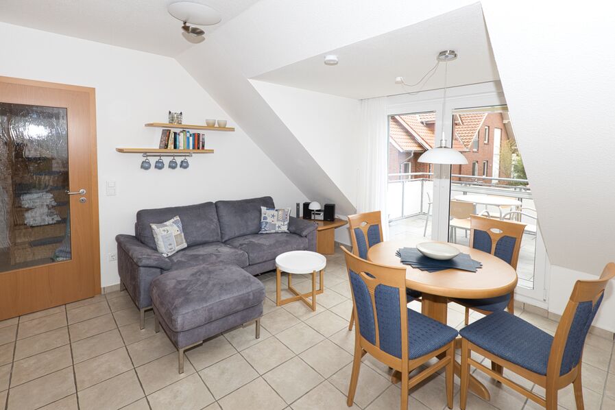 Eine gemütliche und geräumige Ferienwohnung, im beliebten Aquaris in Duhnen, auf 2 Ebenen für bis zu 4 Personen mit einem groß ausgerichteten Süd-West Balkon erwartet Sie hier. Einen besonderen Komfort bieten neben den 2 Schlafzimmern mit je einem Doppelbett, die beiden Duschbäder. Entspannung nach einem Spaziergang finden Sie im gemütlichen Wohn- Ess- und Küchenbereich mit direkten Balkonzugang. Ein PKW-Stellplatz (Nr. 10), sowie ein abschließbares Fahrradhaus und weitere Abstellplätze für Ihre Räder auf dem Grundstück sind ebenso vorhanden.