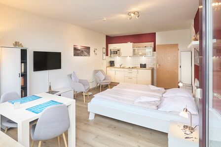 Herzlich willkommen in unserer charmanten 1-Zimmer Ferienwohnung im Appartementhaus Düne mit Nordseeblick! Perfekt für bis zu 2 Personen und barrierefrei mit Fahrstuhl erreichbar, bietet diese Wohnung einen entspannten Rückzugsort für Ihren Urlaub.