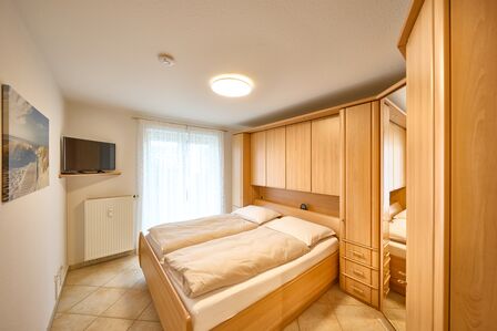 Die Wohnung bietet zwei separate Schlafbereiche, die bewusst schlicht, praktisch und gemütlich gehalten sind – ideal für erholsame Nächte.