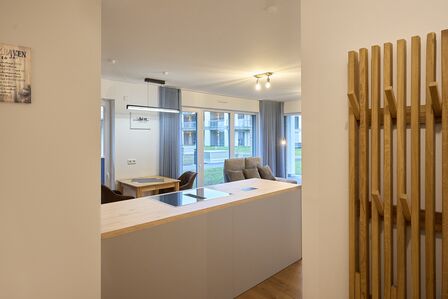 Die Küche ist so eingerichtet, dass Kochen im Urlaub Freude bereitet – funktional, modern und komplett ausgestattet. Sie fügt sich offen in den Wohnbereich ein und unterstützt mühelose kulinarische Momente.