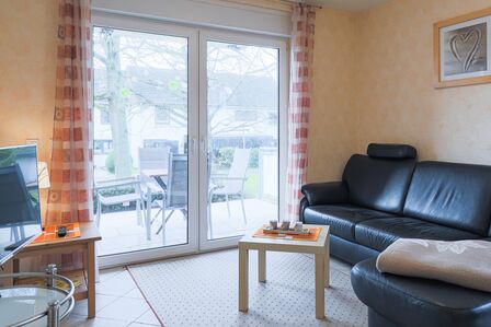 4-Raum-Maisonette über Hochparterre und Souterrain, ca. 94 m², 2 Bäder, eigene Sauna – für bis zu 6 Personen
