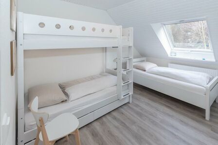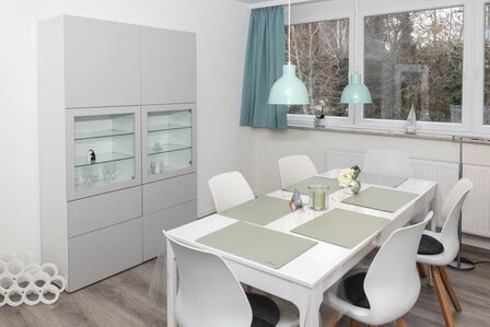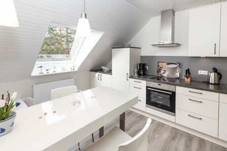 Erleben Sie hier Ihre Auszeit, genießen Sie in ruhiger, aber strandnaher, sowie zentrumsnaher Lage (nur 10 Minuten zu Fuß zum Strand - über die Duhner Allee) einen unvergesslichen Urlaub. Die Ferienwohnung - Auszeit - in Duhnen. Für die Kleinsten ist ein Spielplatz in wenigen Schritten erreichbar. Wenn die Kinder sich dann ausgetobt haben, bietet die Ferienwohnung eine wunderbare Balkonterrasse (Süd/West) für die Kaffeepause. Diese großzügige, in 2018 komplett erneuerte und absolut ruhig gelegene Ferienwohnung wird Sie begeistern. Hell, freundlich und modern eingerichtet. Mit einer separaten Küche mit einer Sitztheke. Hier macht das abendliche Kochvergnügen Spass. Die Kleinsten haben Ihr hier sogar Ihren eigenen Sitzplatz mit Tisch und 2 Stühlen. Toll. So können die Eltern sich in Ruhe auf das Essen machen konzentrieren. Die anderen Gäste verweilen inzwischen im lichtdurchfluteten Wohnbereich mit einer großen Couch und Sessel. Zum Essen steht Ihnen dann ein Esstisch mit 6 Sitzmöbeln zur Verfügung. Das Bad mit seiner großzügigen Dusche und Doppelwaschtisch mit Radio, Waschmaschine sowie WC ist modern gefliest und hat ein Fenster. Die beiden Schlafbereiche sind jeweils mit einem Einbaukleiderschrank, der sich dem Raum sehr gut einfügt, für die jeweilige Personenanzahl eingerichtet. In dem einen Schlafzimmer befindet sich ein Doppelbett und in dem anderen ein auch für Erwachsene geeignetes Etagenbett und ein komfortables Einzelbett. Für die 6. Person kann die Couch im Wohnbereich genutzt werden.