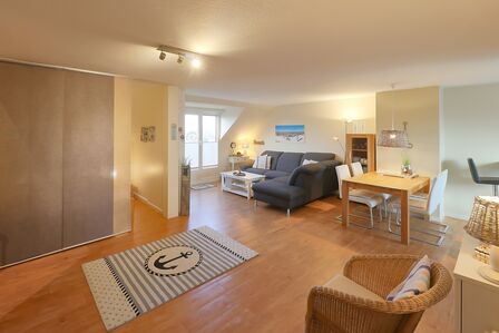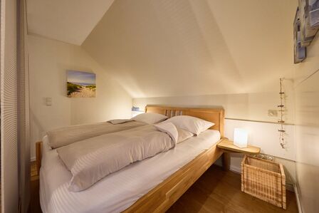 In diesem gemütlichen und schön gelegenen 2-Raum Ferienquartier, inkl. einer tollen Aufteilung für 4 Personen erwarten Sie helle Räume und eine gute Ausstattung. Die Ferienwohnung ist im 2.OG mit Fliesen ausgestattet und im DG, dem Kinderzimmer mit Teppich. Der Wohn- und Essbereich und Schlafbereich ist sehr gut aufgeteilt mit einem großzügigen Küchen- und Essbereich. Der Wohnbereich (mit TV, Radio-CD-USB- Player) ist gemütlich und lässt Sie von dem angrenzendem Süd-West Balkon bis in die Duhner Heide sehen. Der Schlafbereich ist abgetrennt hinter einem Vorhang, so das Sie am Tage nichts wegräumen brauchen. Im ausgebauten DG befindet sich ein Kinderzimmer mit 2 Einzelbetten, sowie ein Radio mit Cassetten und CD- Player. Das Duschbad mit WC hat ein Fenster. Im Haus befindet sich noch eine gemeinschaftlich genutzte, gebührenpflichtige Sauna mit Ruheraum und Kaminzimmer.
