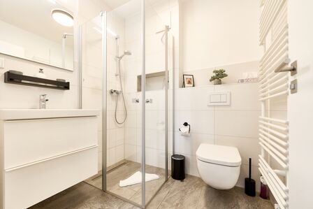 - Duschbad: Modernes Bad mit ebenerdiger Dusche, WC, Handtuchheizkörper