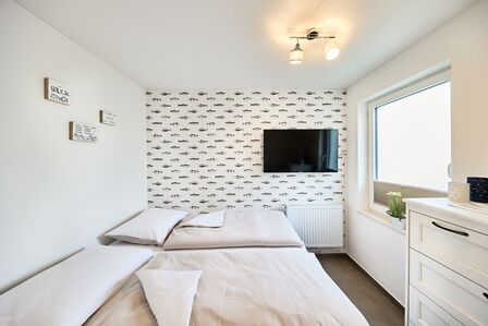 - Schlafzimmer mit komfortablem Boxspringbett (180×200 cm) und zusätzlichem Flachbild-TV