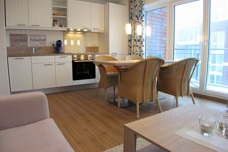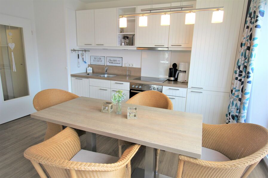 Die moderne Küche ist funktional und übersichtlich ausgestattet – ideal für die Selbstverpflegung im Urlaub.