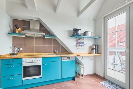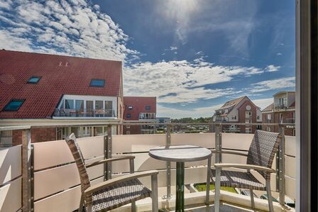 Zwei Sonnenbalkone laden dazu ein, die frische Nordseeluft in vollen Zügen zu genießen. Im Frühjahr und Herbst/Winter gewähren der Erker und der seitliche Balkon durch die umliegenden Bäume sogar einen kleinen Blick auf die Nordsee.