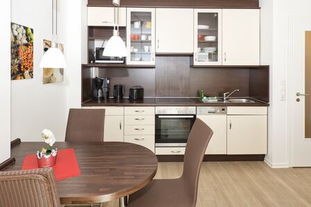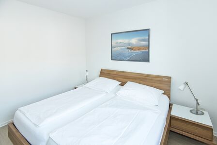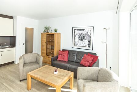 Diese Ferienwohnung wird Sie von der Lage und Ausstattung begeistern. Diese hochwertige und modern ausgestattete 2-Raum Ferienwohnung im 1.OG bietet Ihnen eine hochwertige Einrichtung, mit einem sehr schönen Wohn- und Essbereich und einer vollständig eingerichteten optisch tollen Küchenzeile mit hochwertigen Einbaugeräten. Der Zugang zum Südbalkon erfolgt über eine große Balkontür im Wohnbereich. Diese Wohnung lässt nichts vermissen. Das Schlafzimmer ist eingerichtet mit einen Doppelbett und großem Kleiderschrank. Ein Duschbad mit WC und Fenster fehlt natürlich nicht und ist mit Ablagen und einen Handtuchtrockner ausgestattet. Die gesamte Wohnung ist mit allergikerfreundlichen Bodenbelägen ausgelegt. Eine zweiteilige Garderobe im Flur und ein Abstellraum ist ebenso vorhanden wir ein PKW-Stellplatz, sowie ein abschließbares Fahrradhaus mit reservierten Fahrradabstellplätzen. Eine hochwertige Ferienwohnung in zentraler Lage zum Ortskern und Strand und dennoch in ruhiger Lage erwartet Sie hier. Wir freuen uns auf Sie.