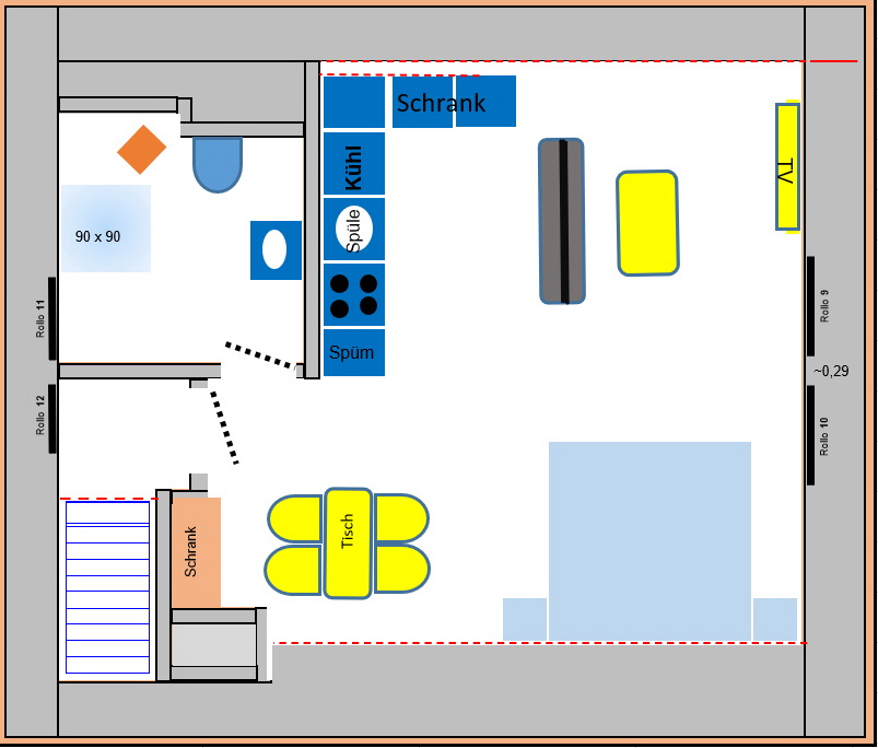 • Wohn/Schlafraum kombi.